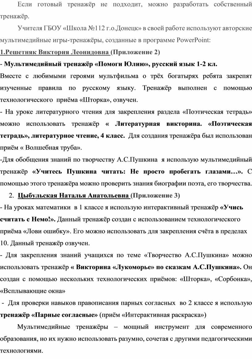 - Сочетания с традиционными методами – мультимедийные тренажёры должны дополнять, а не заменять обычные задания.