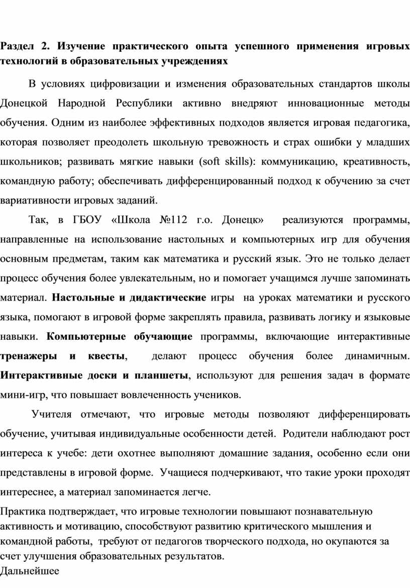 РАЗДЕЛ 2 Изучение практического опыта успешного применения игровых технологий в образовательных учреждениях…………………….……………..…14-23