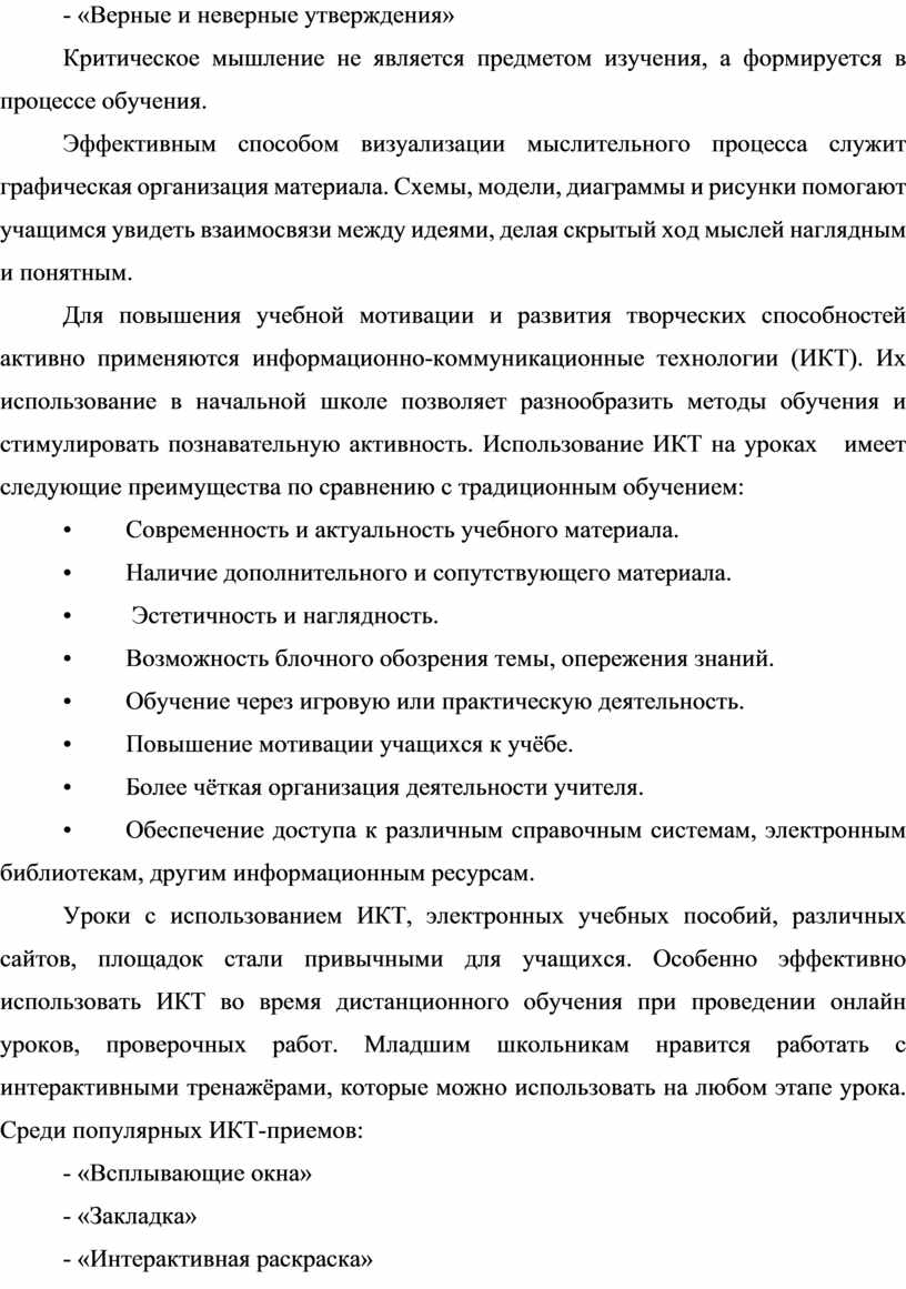 Методы и приемы критического мышления прочно вошли в практику и могут быть использованы в любом классе или предметной области.