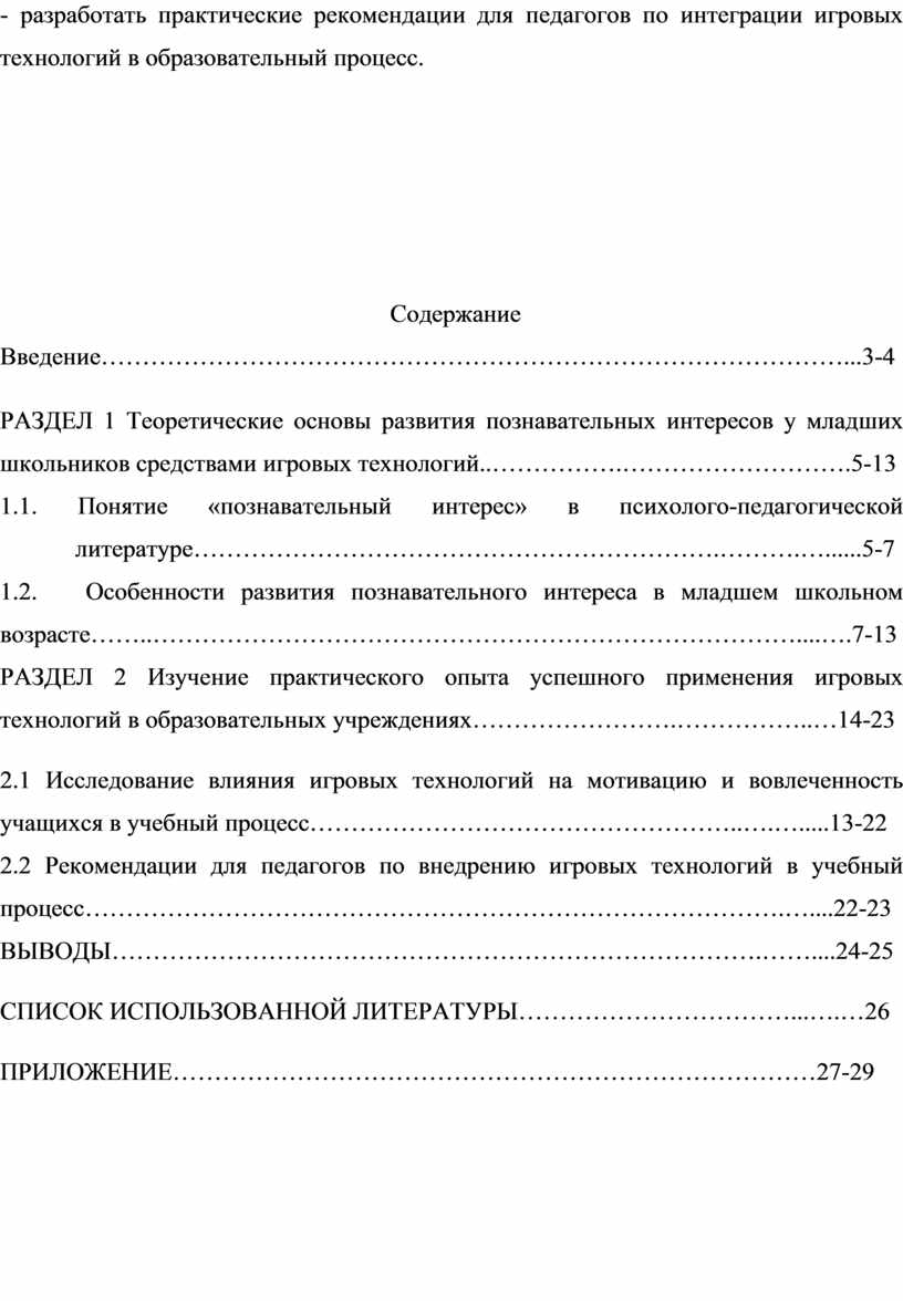 2.2 Рекомендации для педагогов по внедрению игровых технологий в учебный процесс………………………………………………………………………….…....22-23