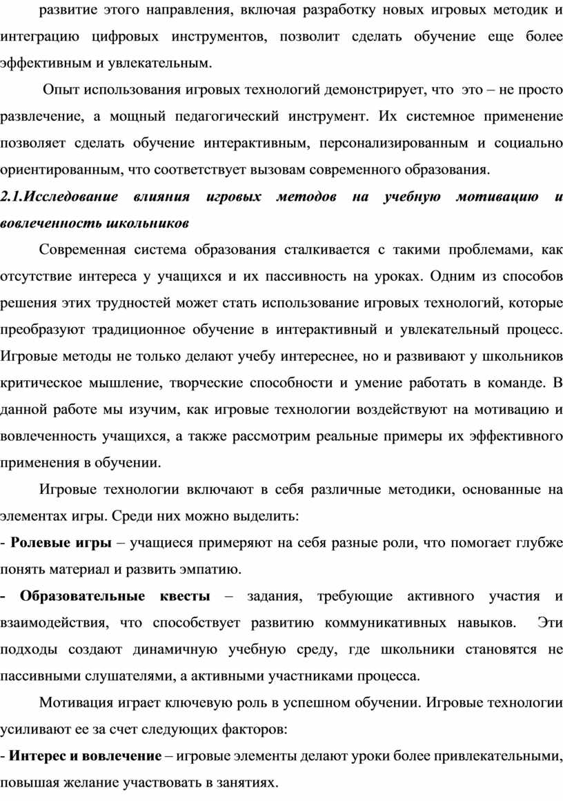 2.1 Исследование влияния игровых технологий на мотивацию и вовлеченность учащихся в учебный процесс……………………………………………..….….....13-22