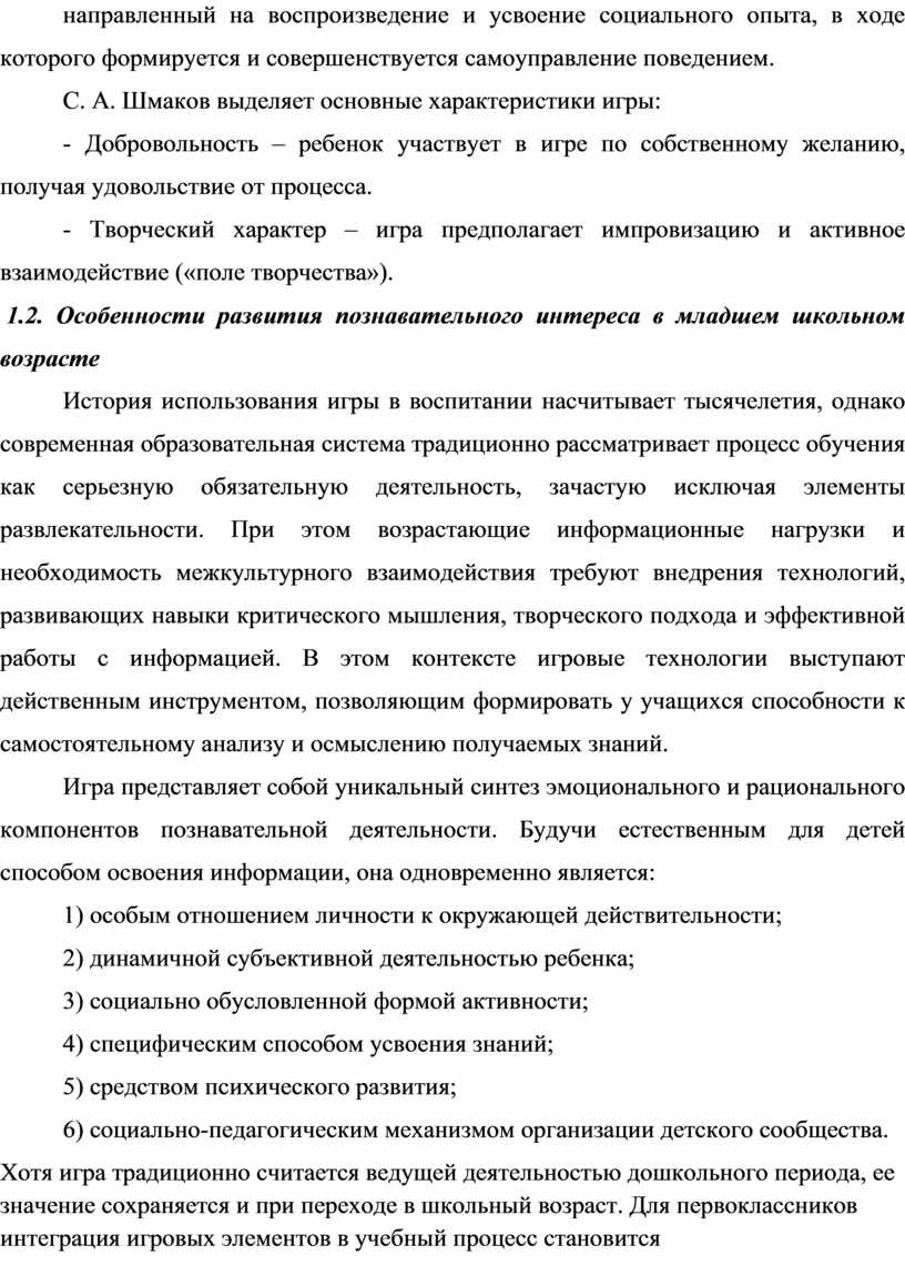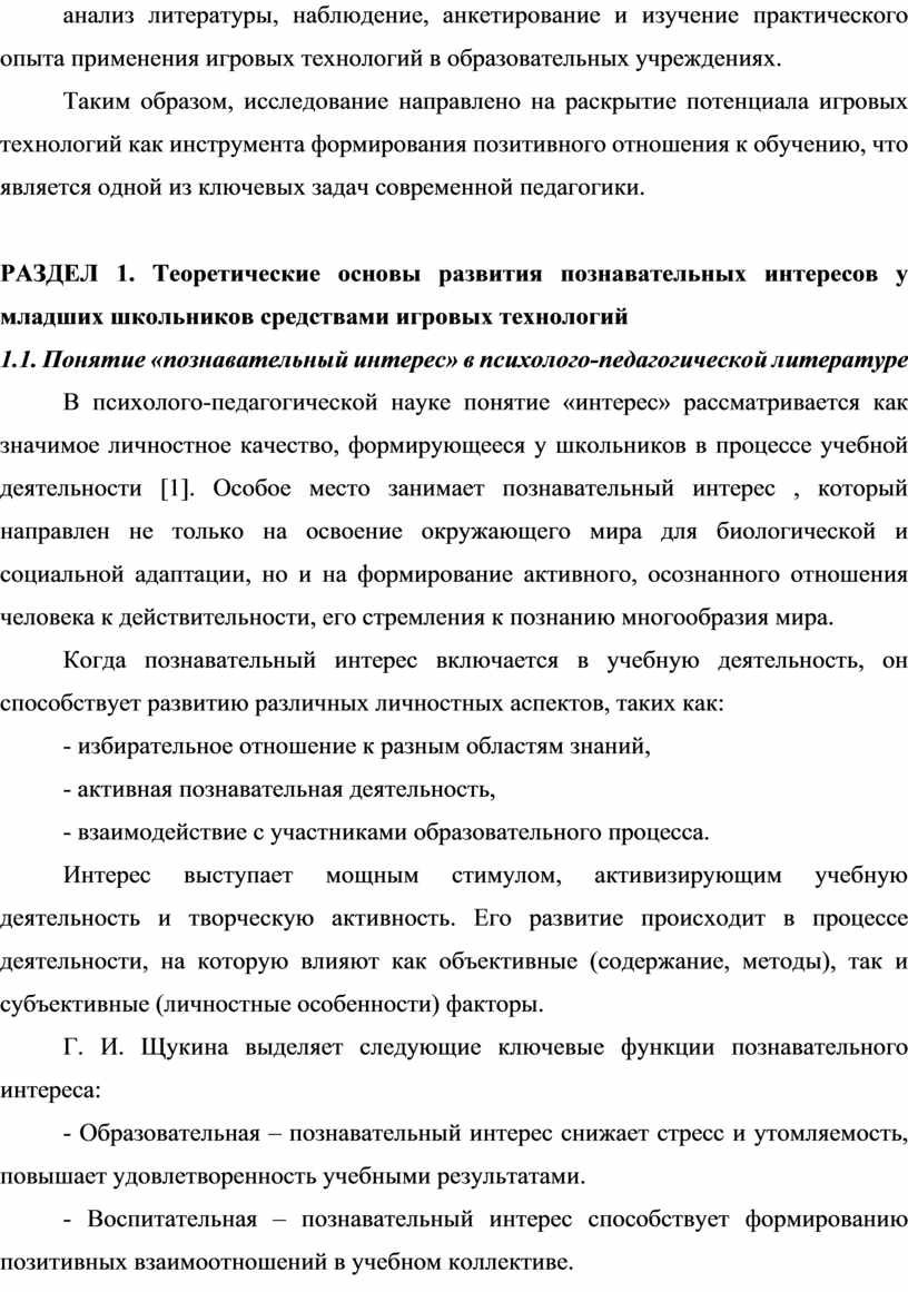 РАЗДЕЛ 1. Теоретические основы развития познавательных интересов у младших школьников средствами игровых технологий