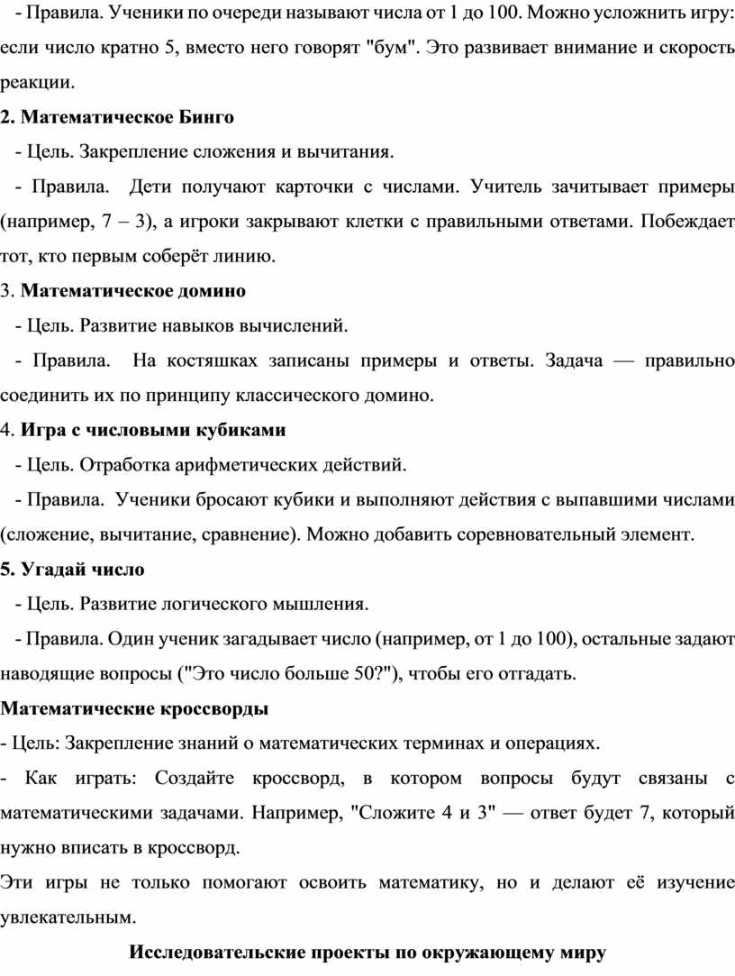 1. Дидактические игры (например, "Математическое лото", "Грамматический бой")