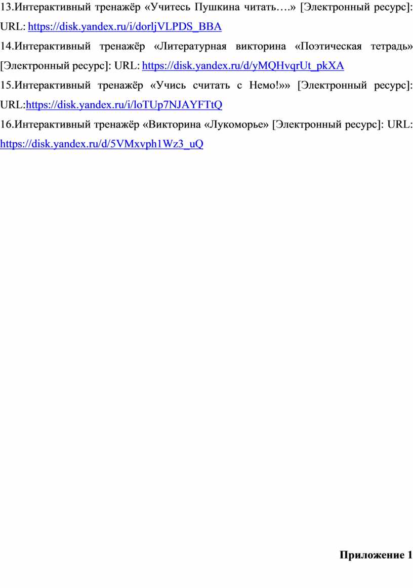 13.Интерактивный тренажёр «Учитесь Пушкина читать….» [Электронный ресурс]: URL: https://disk.yandex.ru/i/dorljVLPDS_BBA