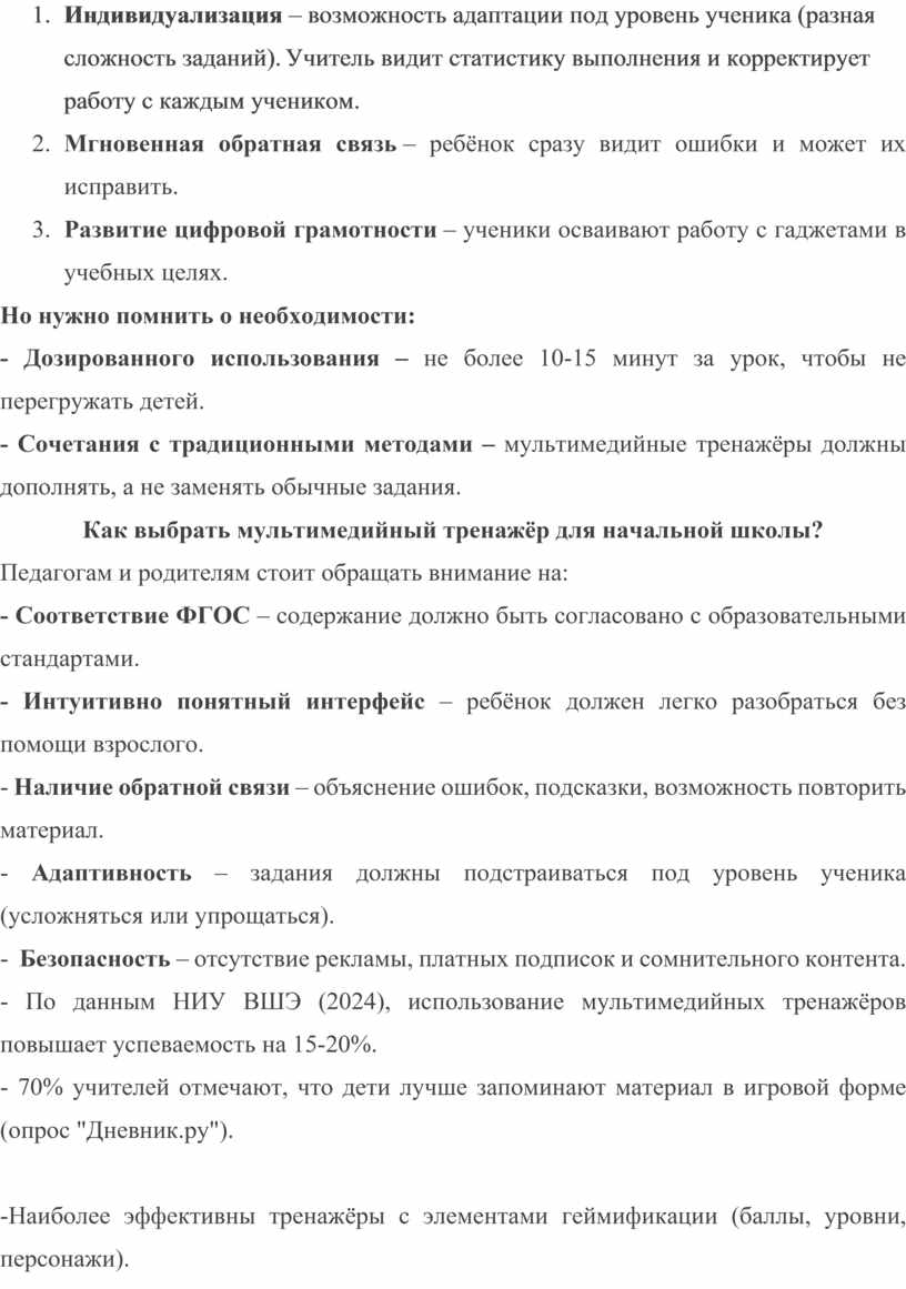 - По данным НИУ ВШЭ (2024), использование мультимедийных тренажёров повышает успеваемость на 15-20%.