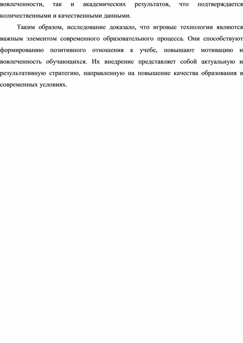 Несмотря на актуальность данной темы, научных исследований в этой области остается недостаточно. Проведение работы по изучению влияния игровых технологий на учебную мотивацию позволит восполнить существующий пробел в теории и расширить методическую базу для педагогов-практиков.