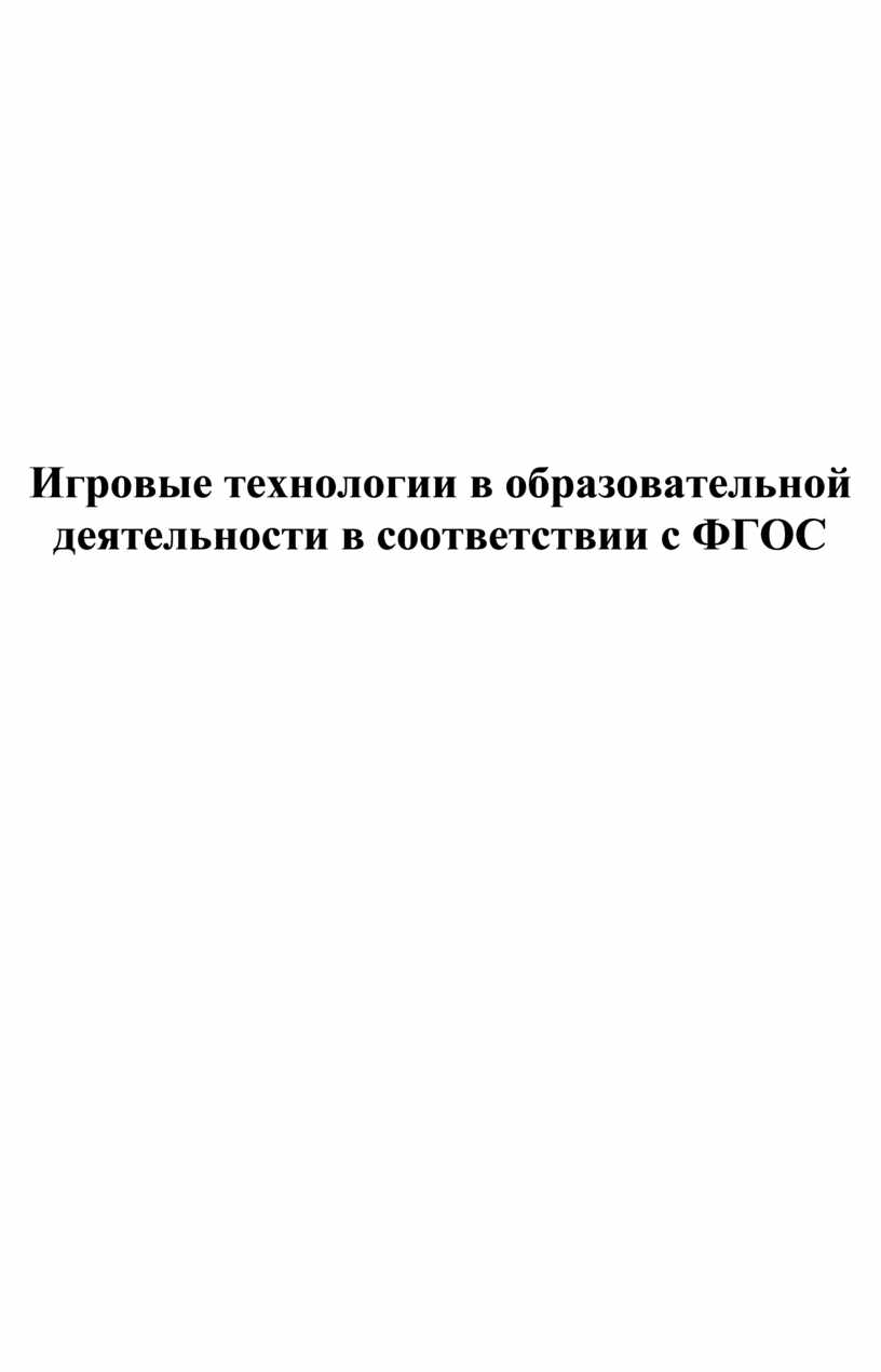 Игровые технологии в образовательной деятельности в соответствии с ФГОС
