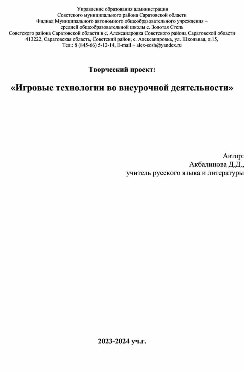 Автор проекта: Акбалинова Д.Д., учитель русского языка и литературы