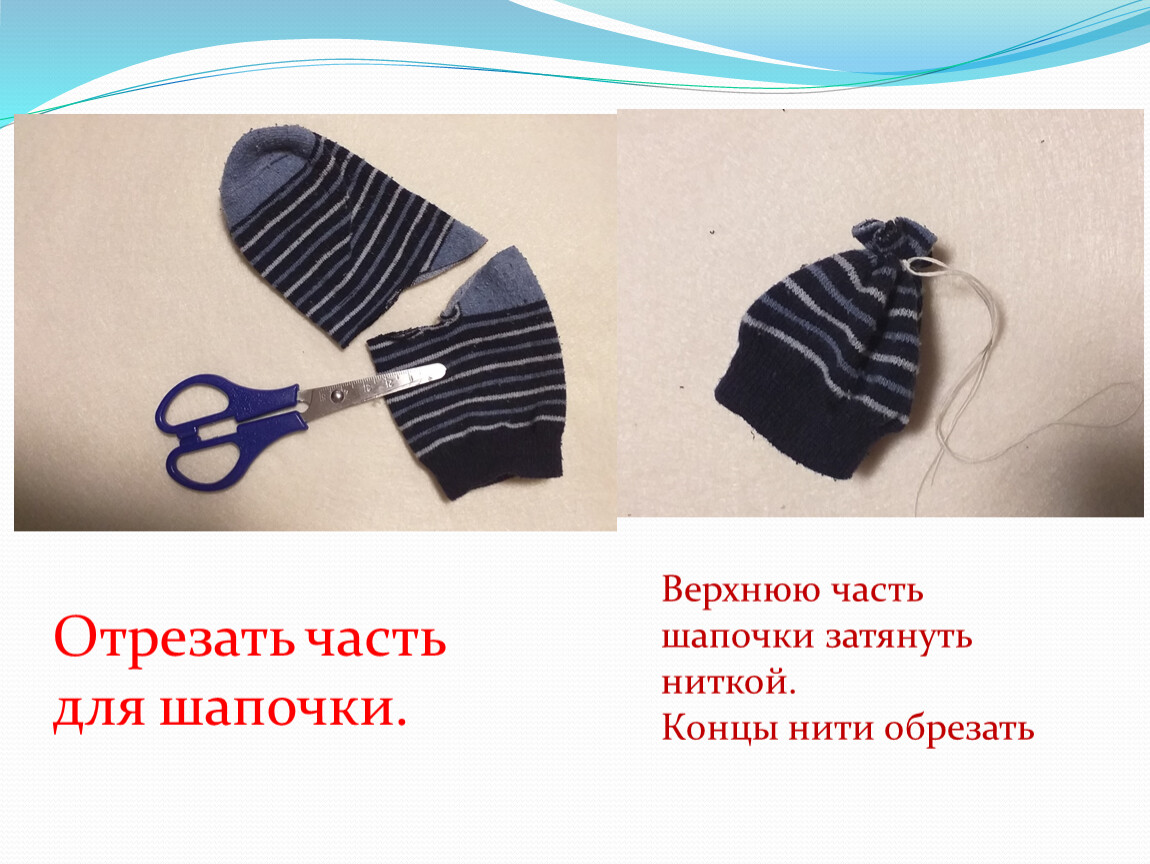 Засыпаем в носок рис. Завязываем нитью верхний край.