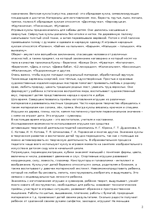 забавляла, учила. Тряпичные куклы делятся на обрядовые, игровые и обережные (куклы -