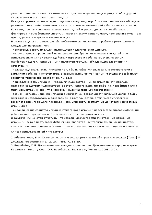 1. Абраменкова, В. И. Осторожно: антиигрушка: родителям об играх и игрушках.[Текст] //