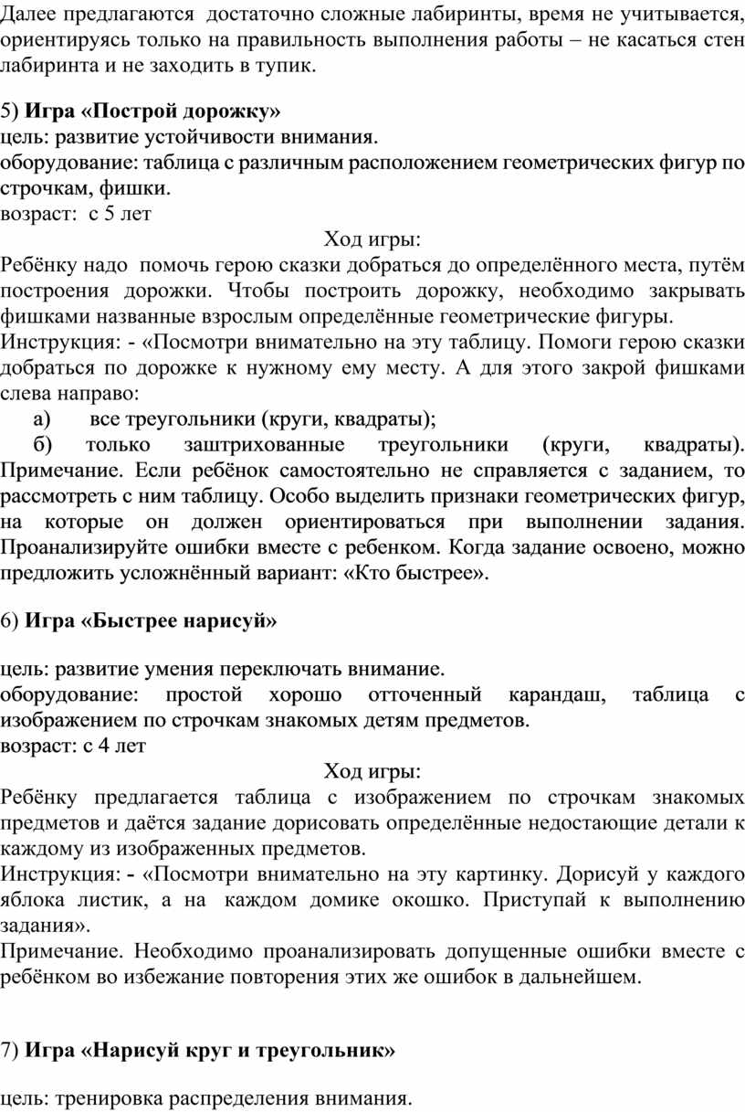 цель: развитие произвольной регуляции и устойчивости внимания