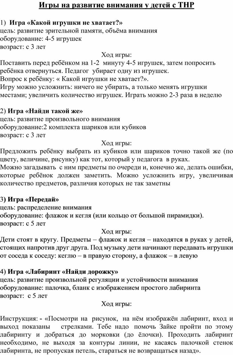 Игры на развитие внимания у детей с ТНР