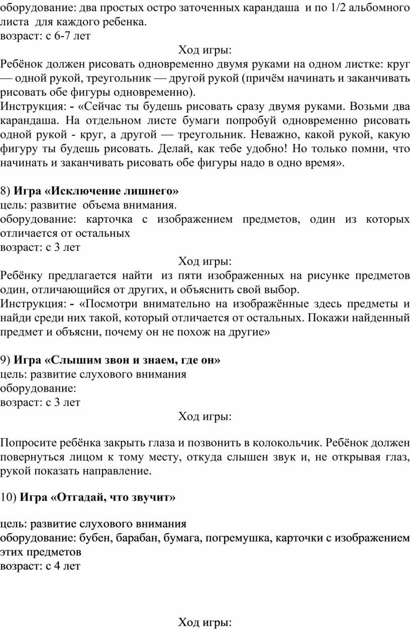 цель: развитие произвольного внимания