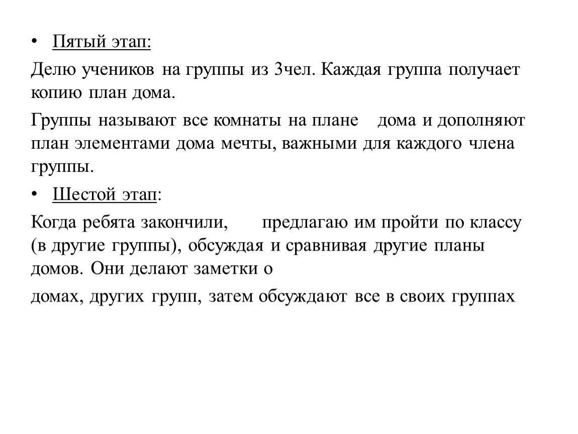 Группы называют все комнаты на плане дома и дополняют план элементами дома мечты, важными для каждого члена группы.