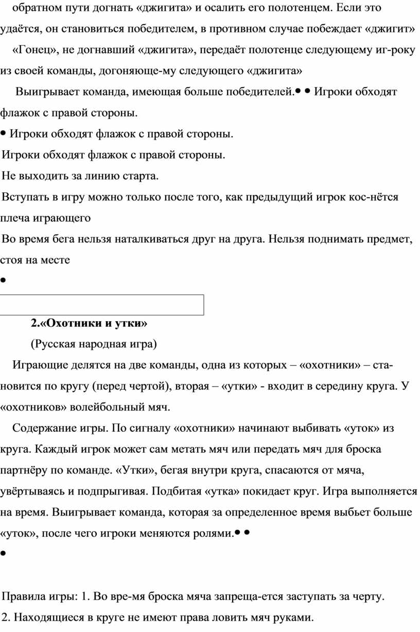 - образовательные: ознакомление с правилами национальных подвижных игр народов России.