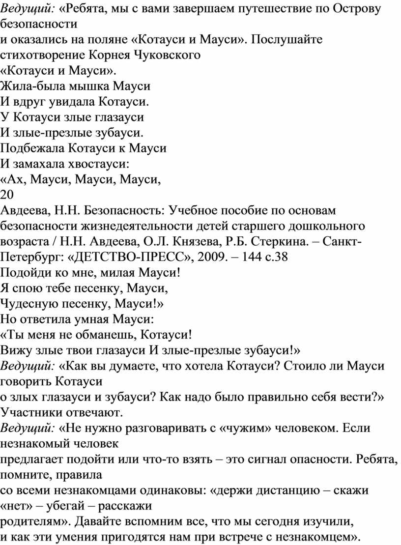 Ведущий: «Не нужно разговаривать с «чужим» человеком. Если незнакомый человек