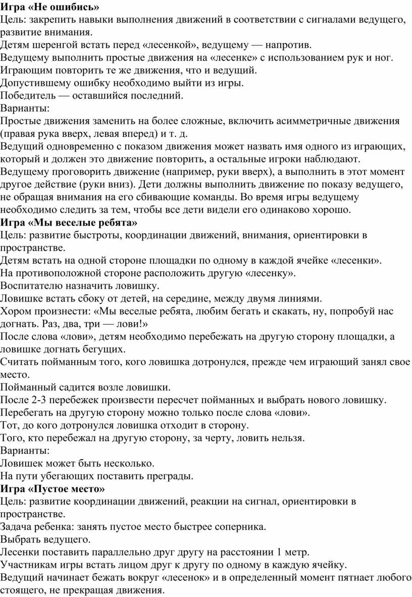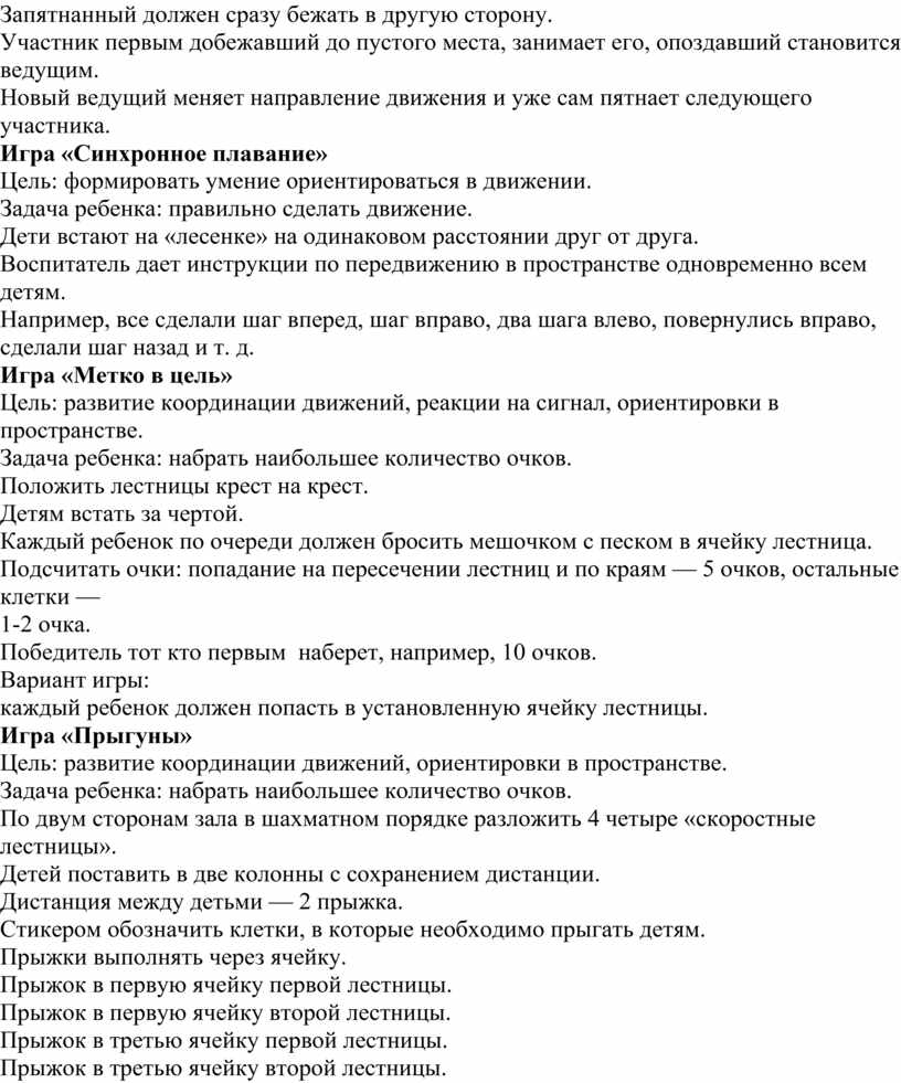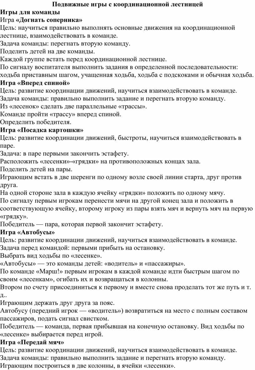 Цель: научиться правильно выполнять основные движения на координационной лестнице, развить самостоятельность, активность, творчество в движении.