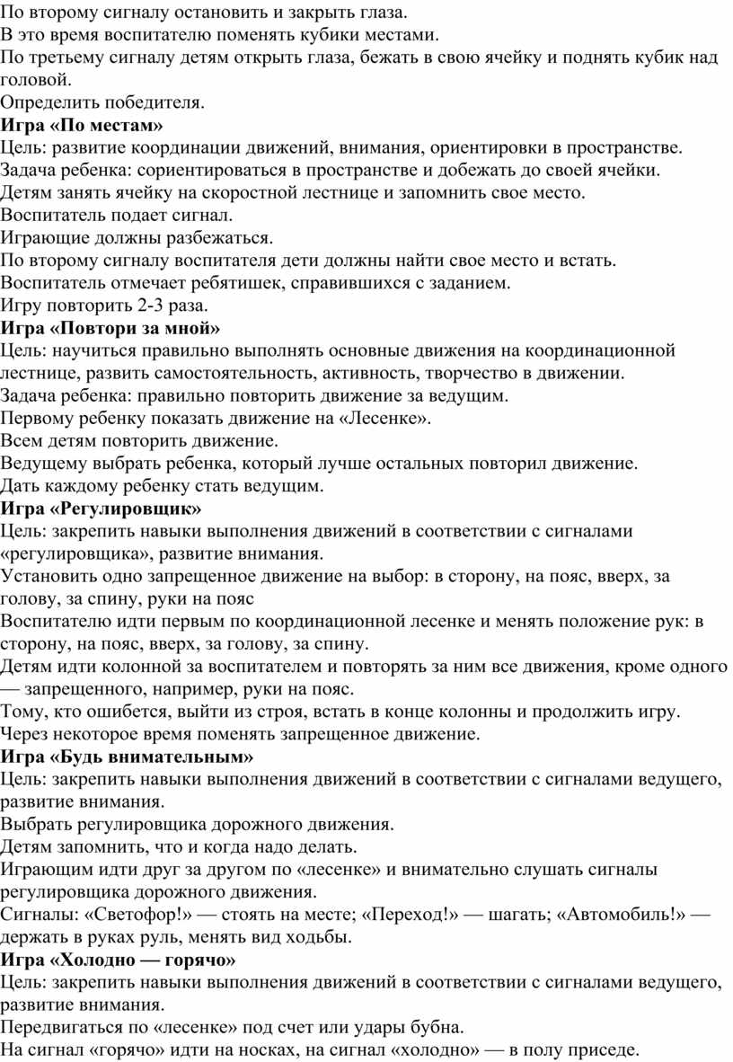 Играющим идти друг за другом по «лесенке» и внимательно слушать сигналы регулировщика дорожного движения.