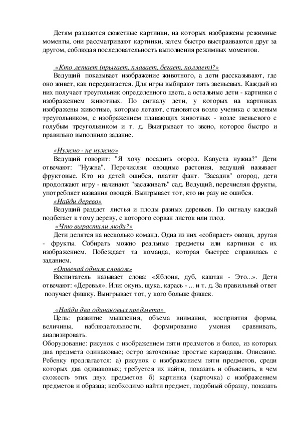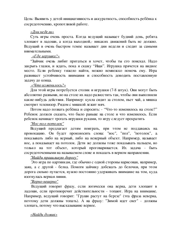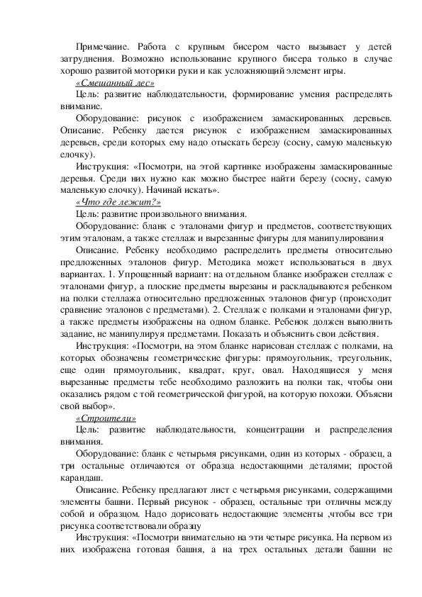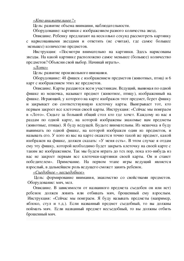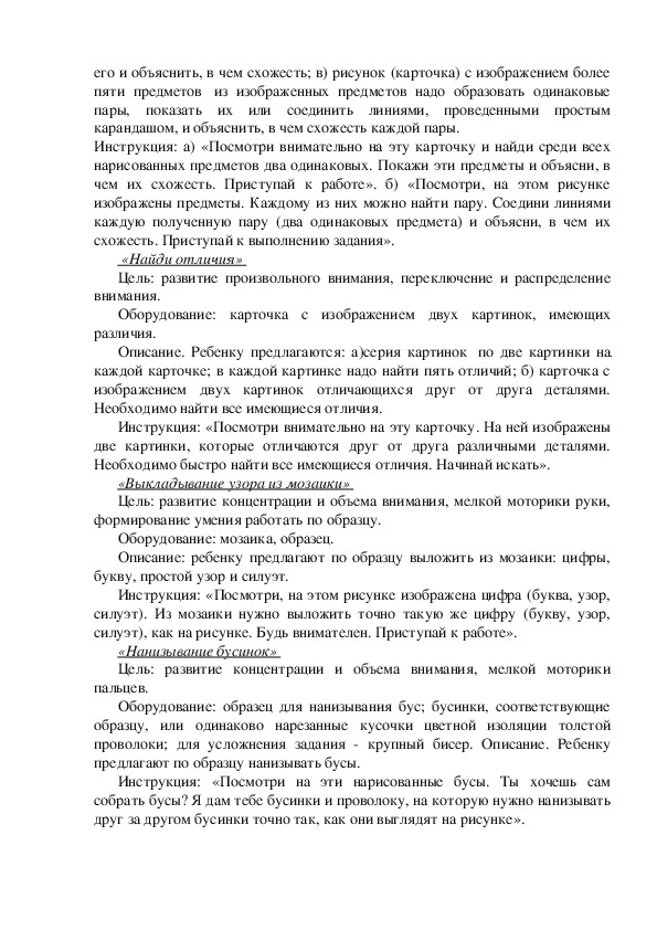 Цель: развитие наблюдательности, распределения, переключения и объема