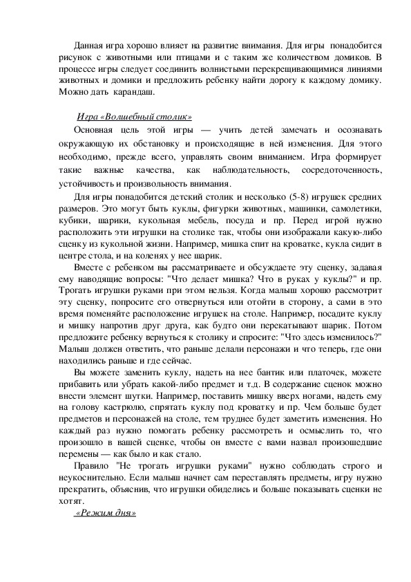 Ребенок должен сказать, что было раньше на столе и что изменилось. Если