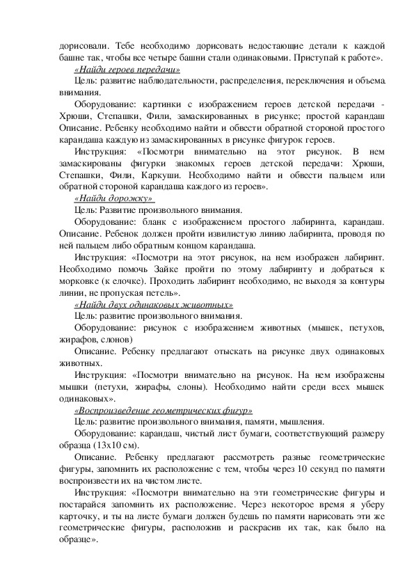 Цель: развитие произвольного внимания, памяти, мышления.