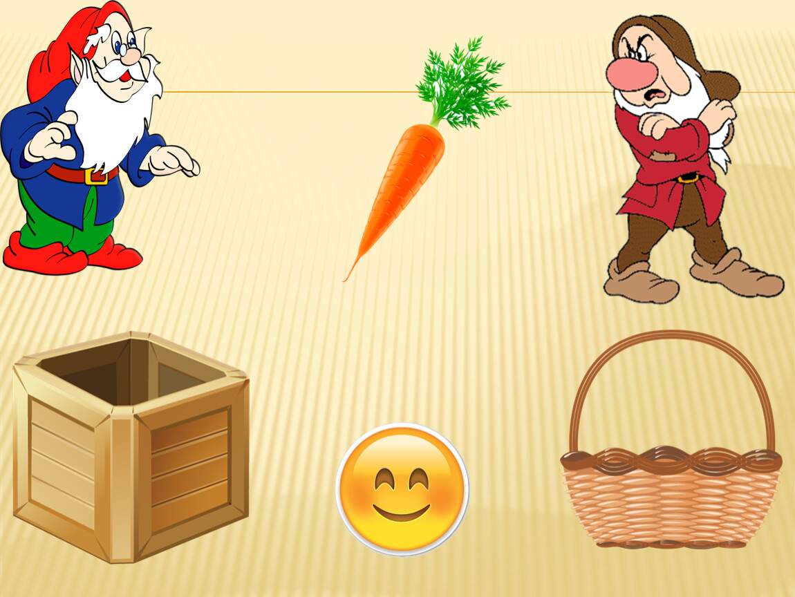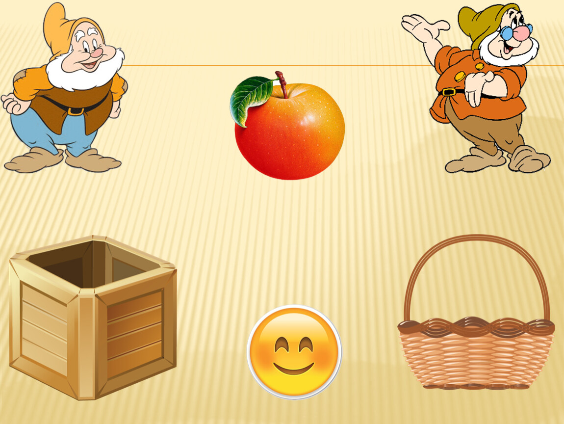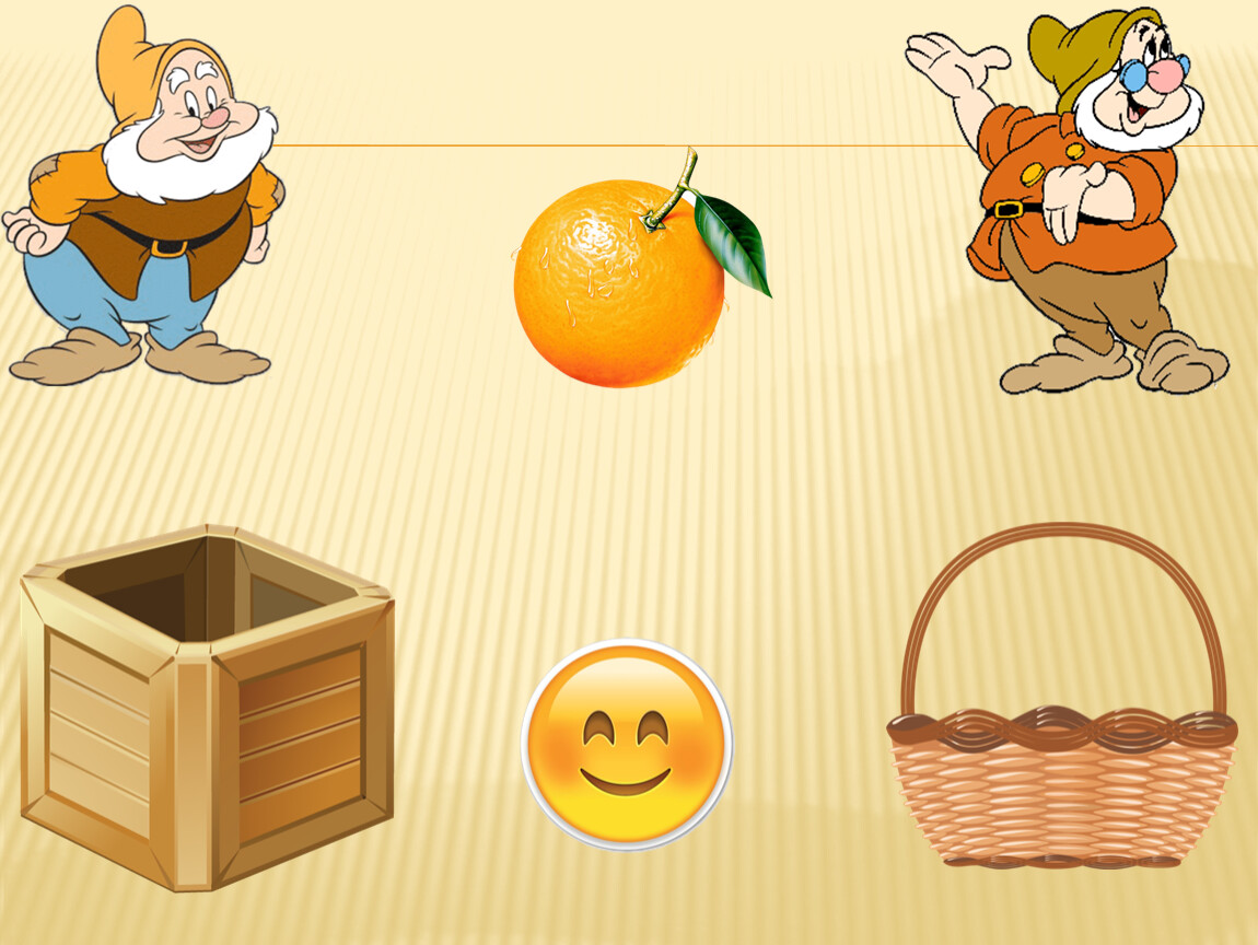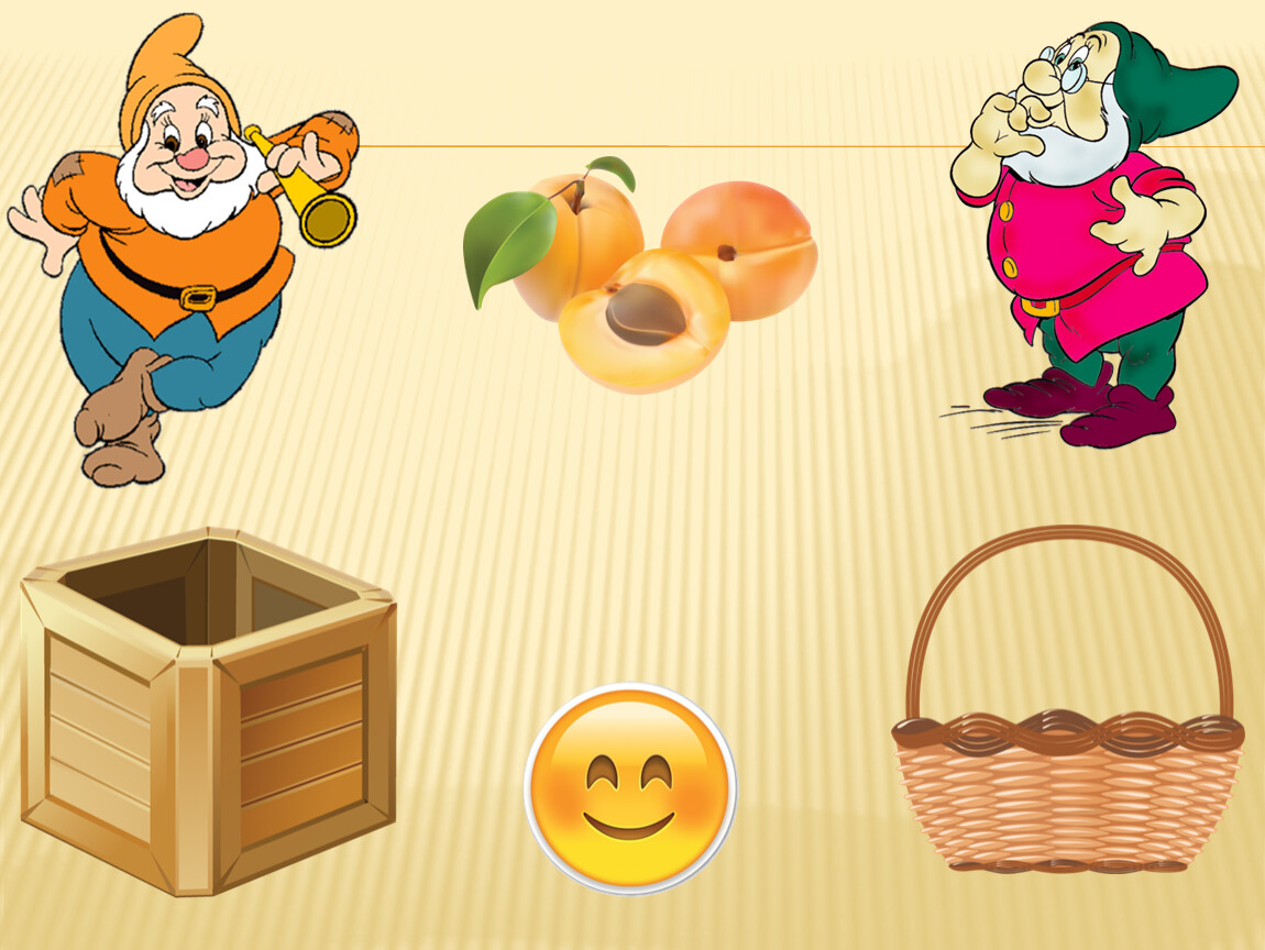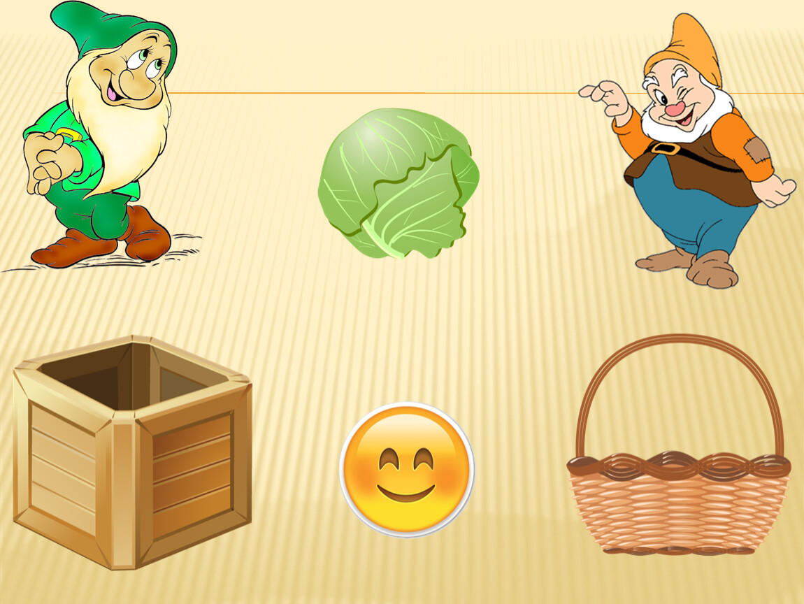 Правила игры: Ребёнку предлагается помочь гномикам собрать урожай. Овощи будем собирать в ящик, а фрукты – в корзину. Далее переходим к началу игры. Малышу предлагаем рассмотреть и назвать картинку, выделить основные особенности внешнего вида, вспомнить, где растёт этот овощ (фрукт). Далее ребёнок нажимает на соответствующий предмет (ящик или корзину), обязательно комментируя свои действия. Если ребёнок выполнил задание правильно, появляется смайлик «улыбка». Нажимая на смайлик «улыбка», переходим к продолжению игры. Если ребёнок выполнил задание неверно, появляется смайлик «огорчение» и малышу предлагаем исправить ситуацию, прокомментировать и сделать правильный выбор. Только смайлик «улыбка» даёт возможность перейти к продолжению игры.