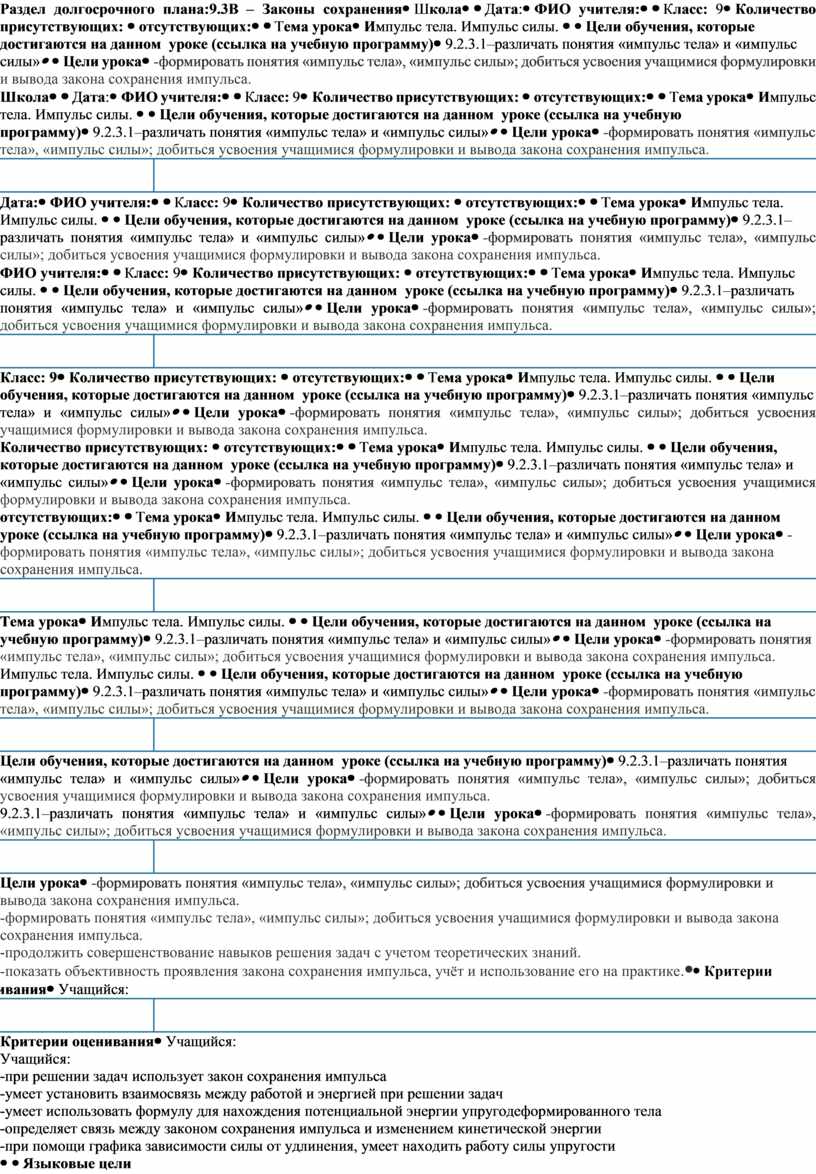 9.2.3.1–различать понятия «импульс тела» и «импульс силы» |