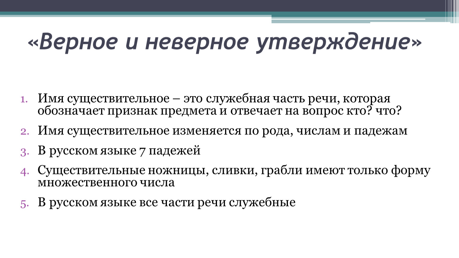 «Верное и неверное утверждение»