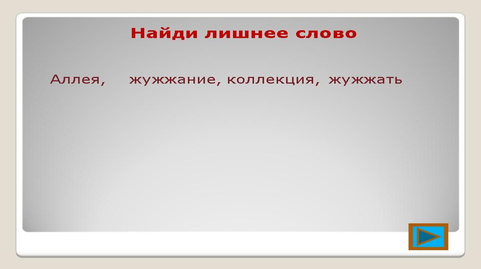(Не)друг, а враг, кольц…, платьиц…, ш…рох, ш…колад, любов…, корабль в(В)…роника.