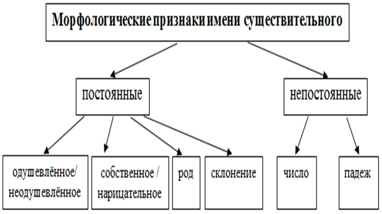 Имя существительное изменяется по рода, числам и падежам