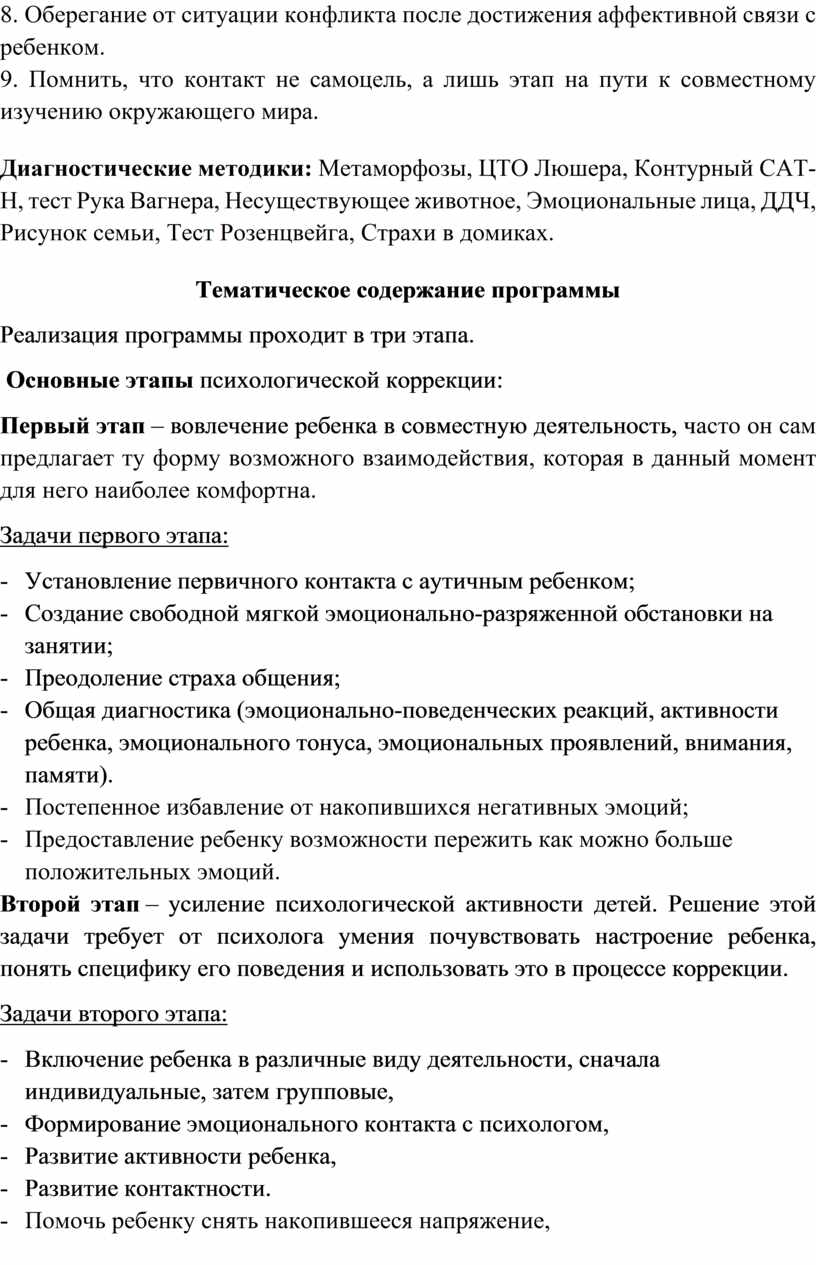 Основные этапы психологической коррекции: