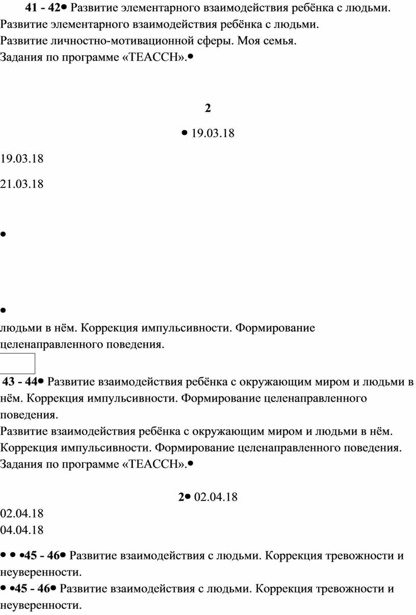 Коррекция импульсивности. Развитие взаимодействия ребёнка с окружающим миром и людьми. Развитие взаимодействия ребёнка с окружающим миром и людьми в нём. Задания по программе «TEACCH» |