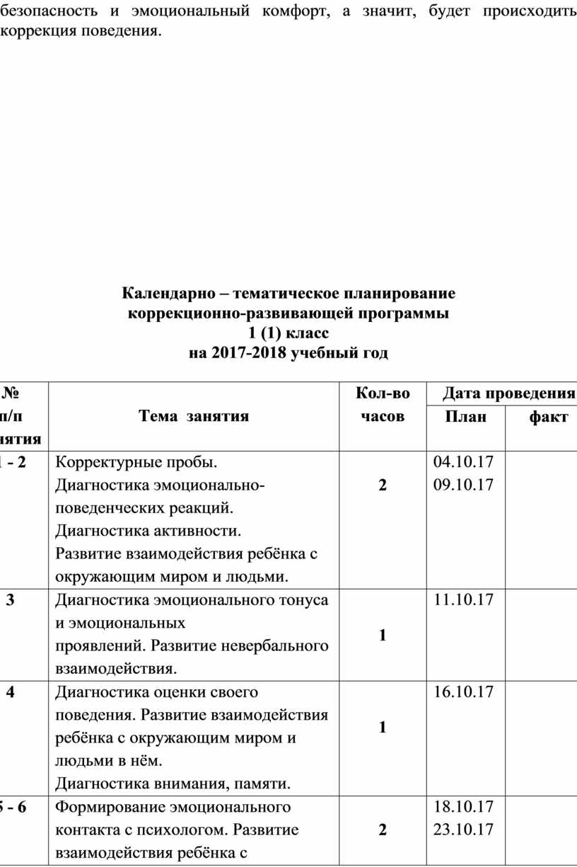 коррекционно-развивающей программы