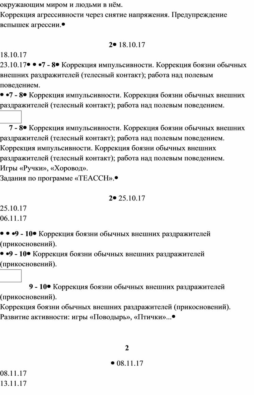 Развитие взаимодействия ребёнка с окружающим миром и людьми в нём. Коррекция импульсивности. Формирование целенаправленного поведения. Задания по программе «TEACCH». |