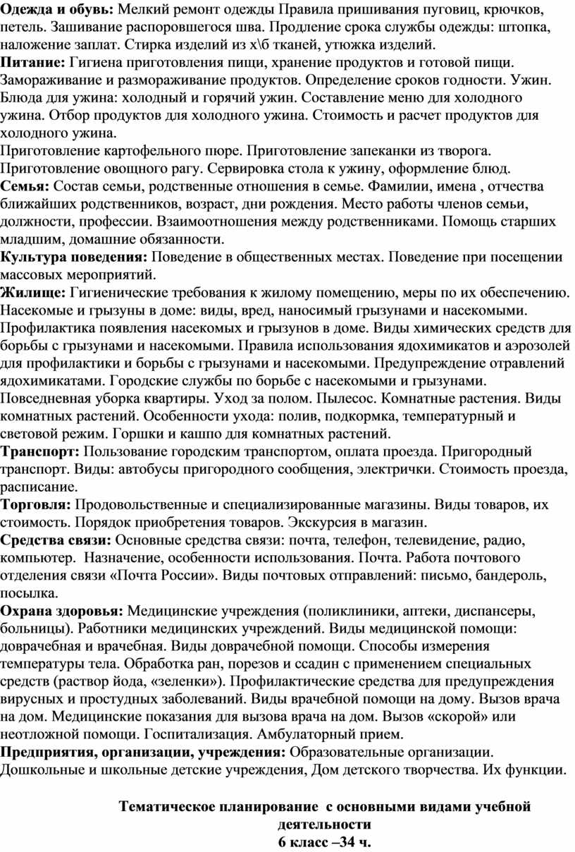 Данная программа составлена на основе основной рабочей программы по основе социальной жизни 6 класса адаптированной основной общеобразовательной программы образования обучающихся с умственной отсталостью (обучающиеся с нарушением интелекта), вариант 1.