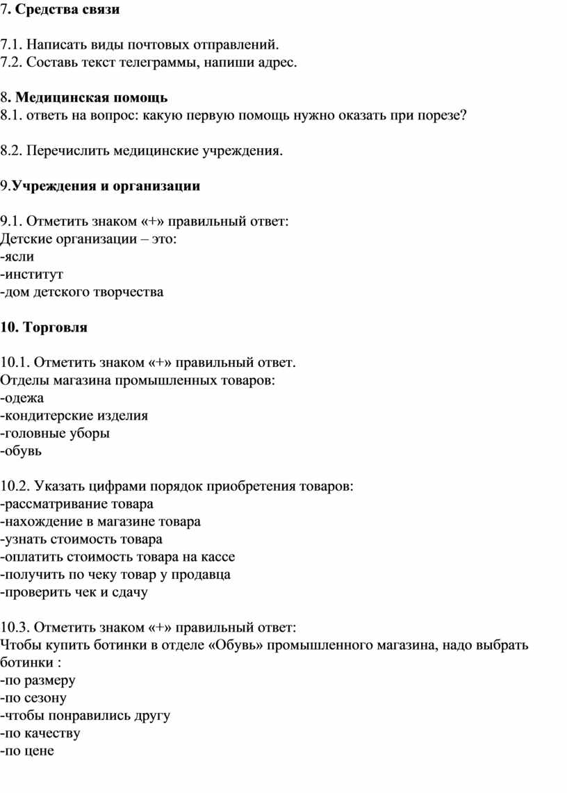 3.2. Выбрать правильные ответы, отметить знаком «+»: