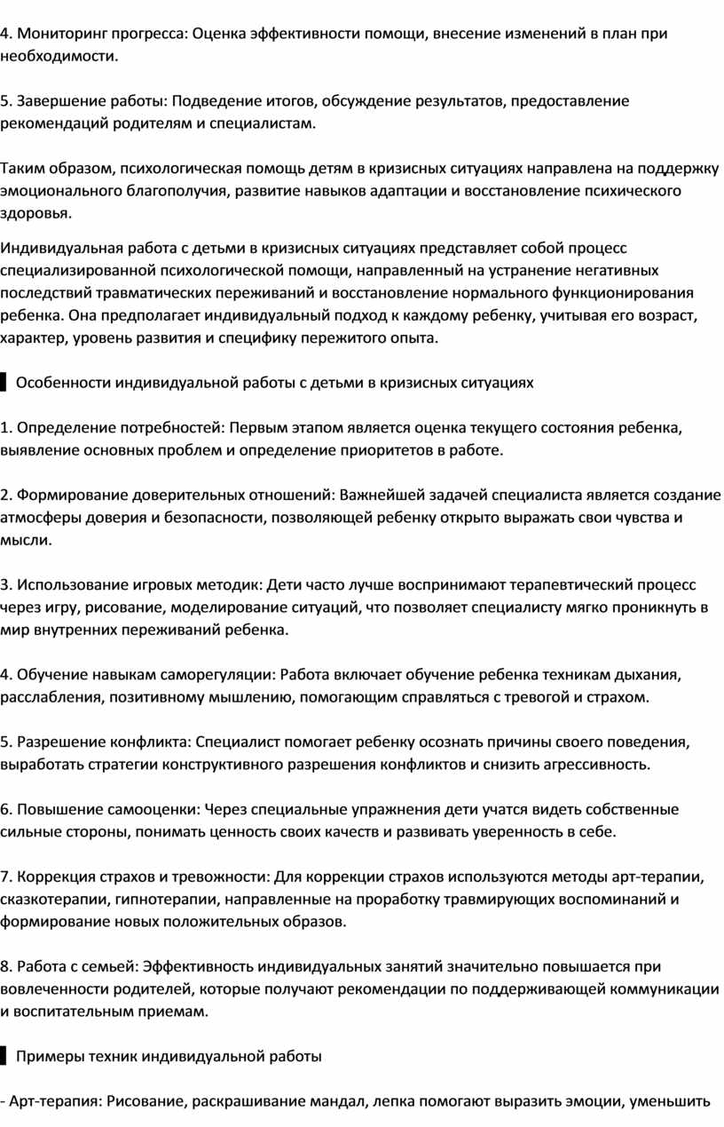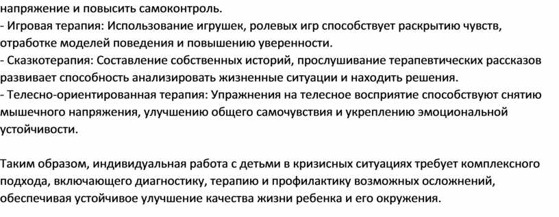 Таким образом, индивидуальная работа с детьми в кризисных ситуациях требует