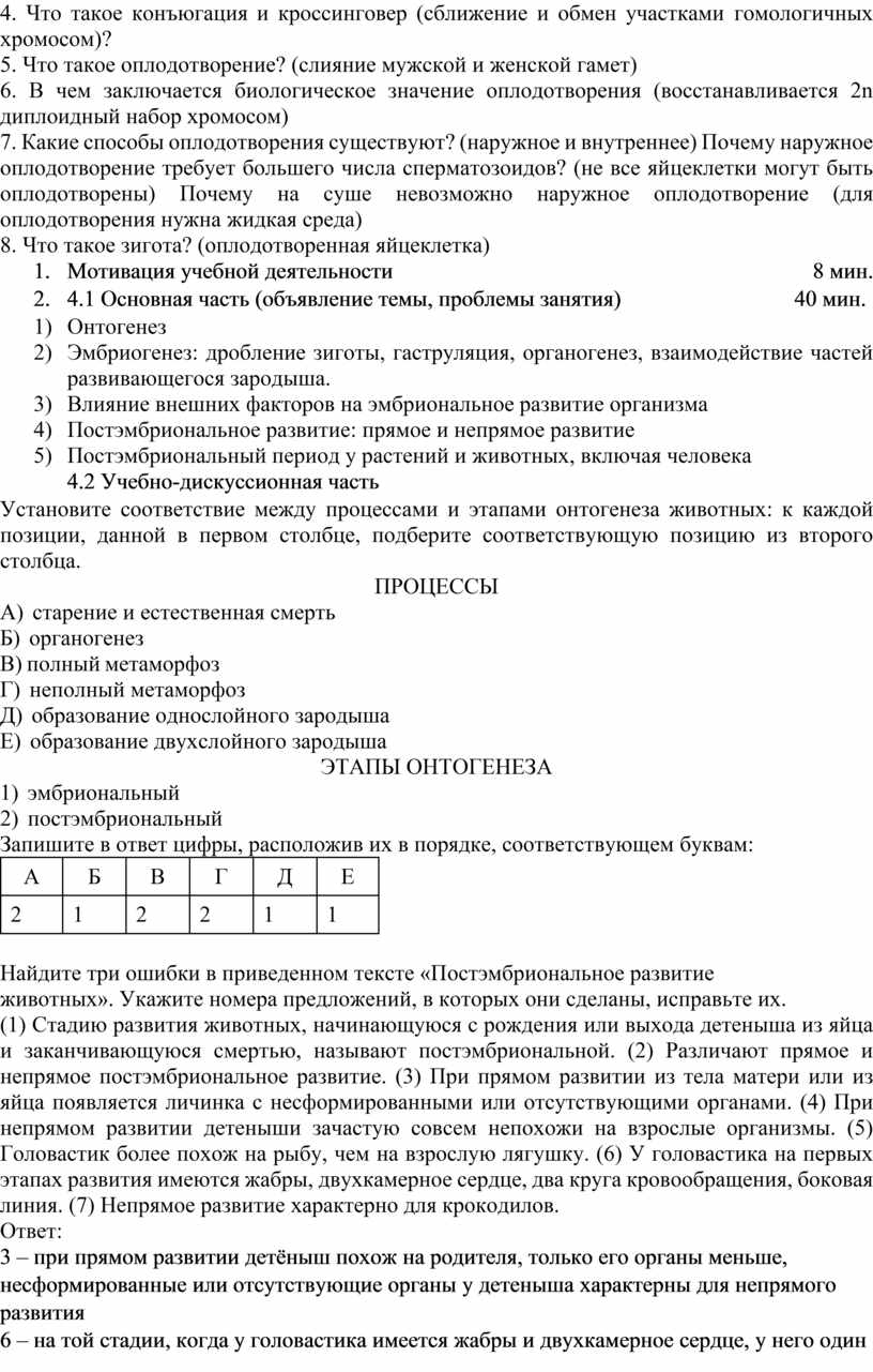 Установите соответствие между процессами и этапами онтогенеза животных: к каждой позиции, данной в первом столбце, подберите соответствующую позицию из второго столбца.