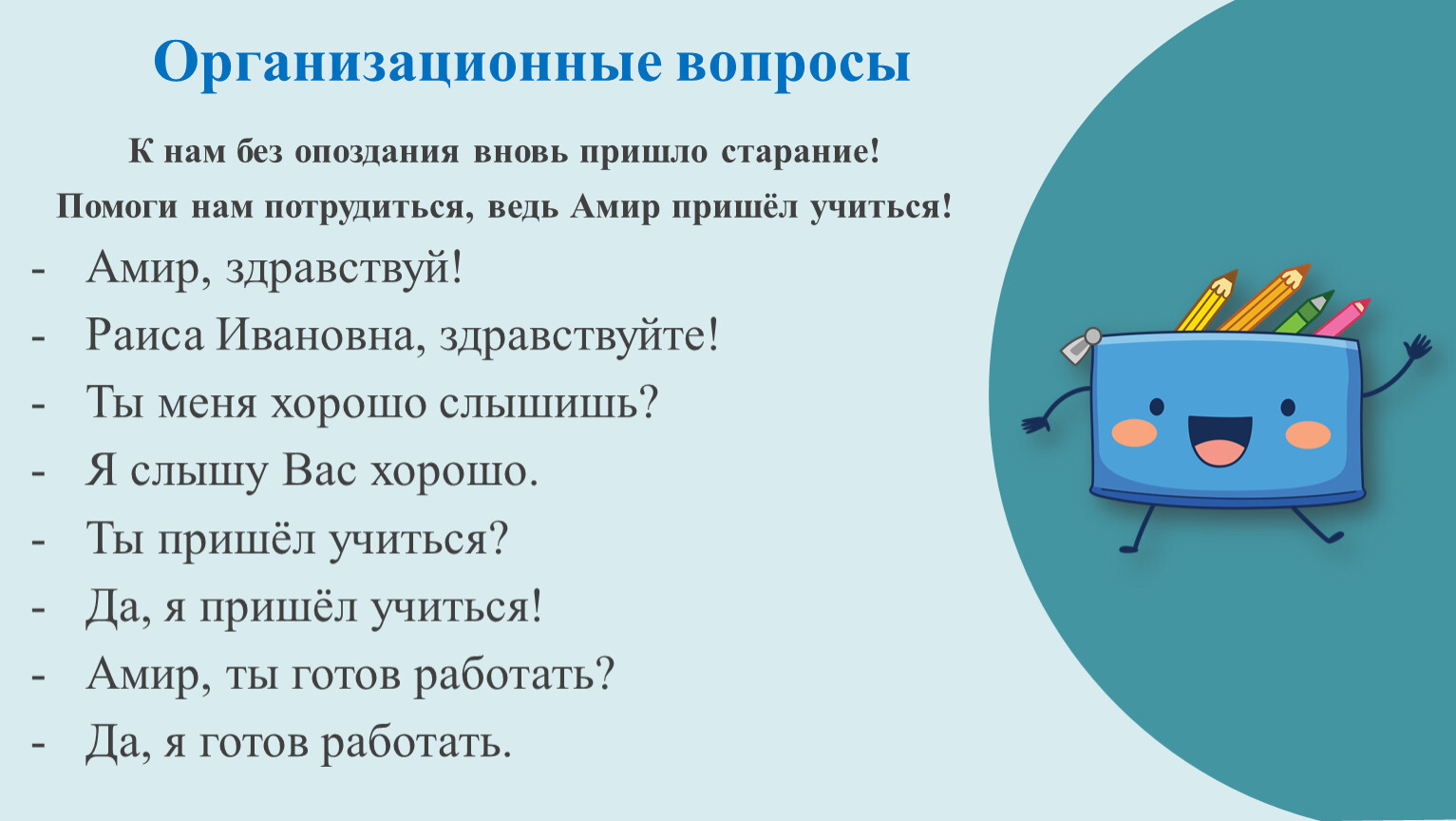 Помоги нам потрудиться, ведь Амир пришёл учиться!
