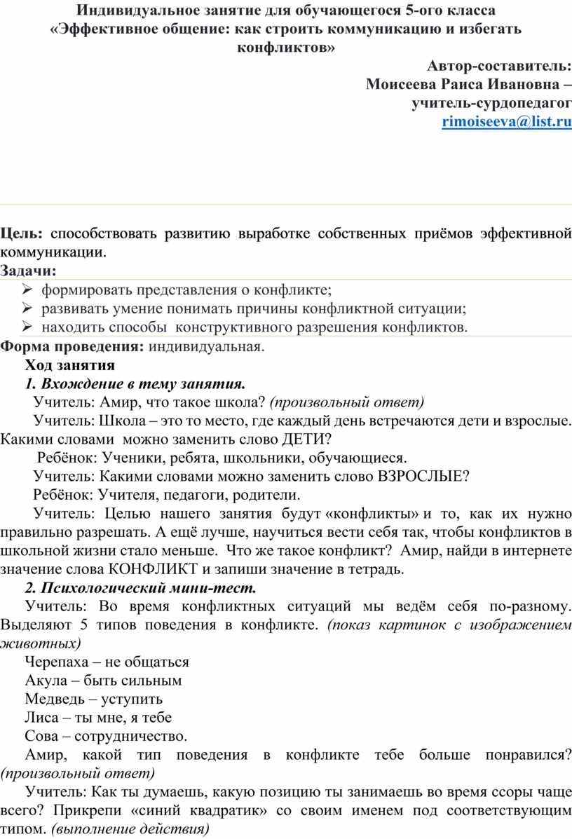 Цель: способствовать развитию выработке собственных приёмов эффективной коммуникации.