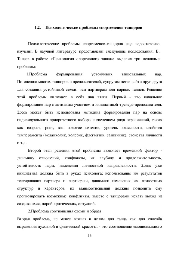 1.2. Психологические проблемы спортсменовтанцоров………………………..15