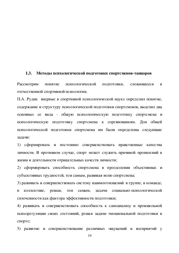 1.3. Методы психологической подготовки спортсменовтанцоров……………..18