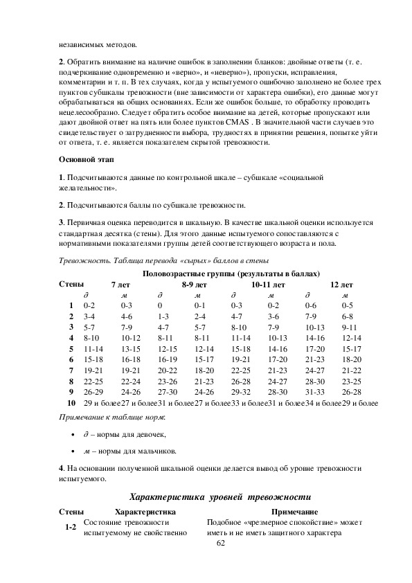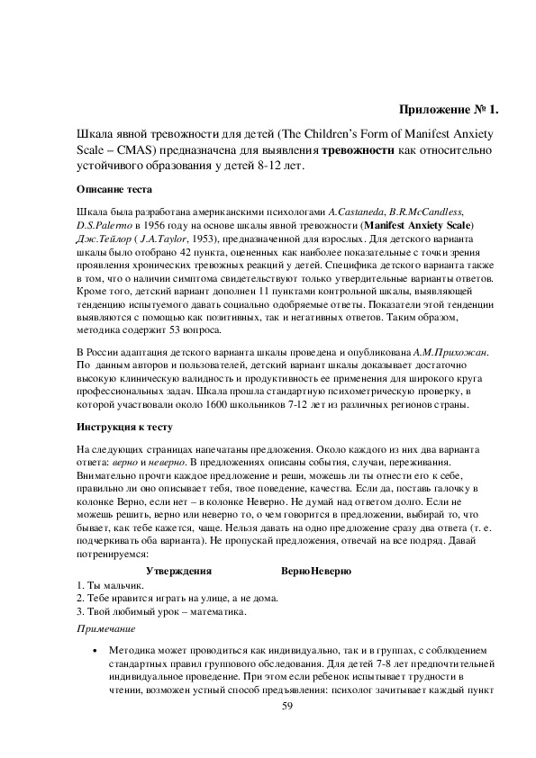 1. Шкала явной тревожности для детей 812 лет CMAS (см.