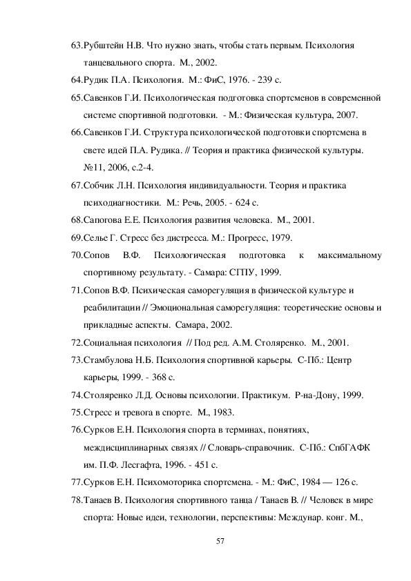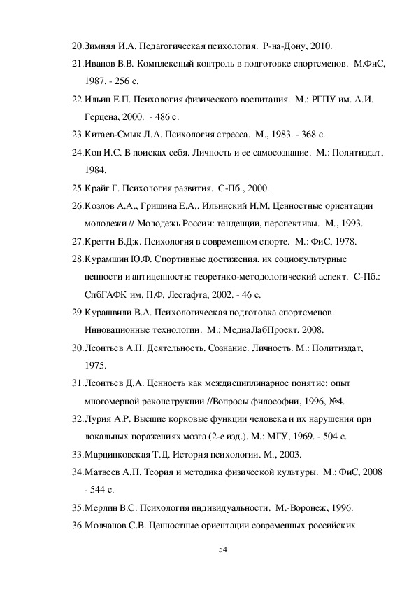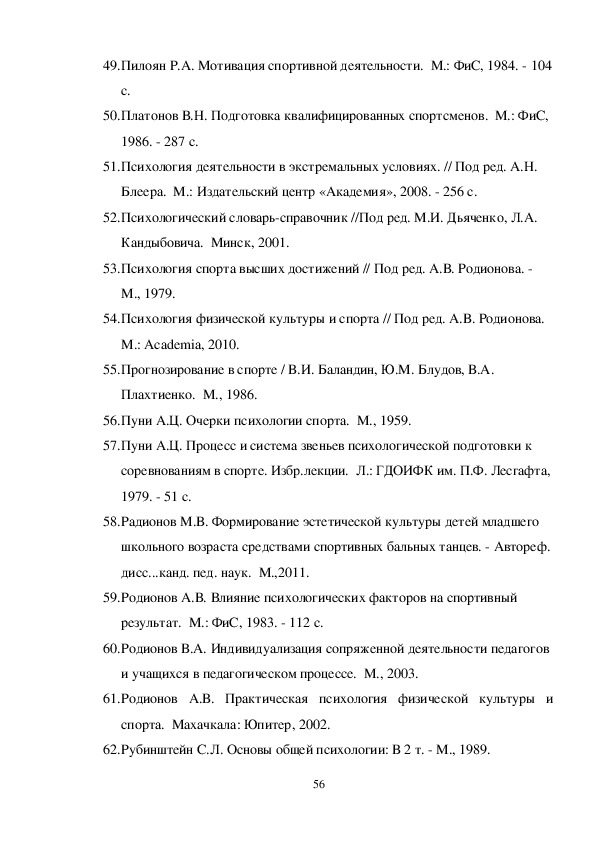 В спортивной психологии определена структура, содержание психологической подготовки, разработана ее типология (труды П.А. Рудика, А.В. Родионова, Г.И. Савенкова, Е.Н. Гогунова, Б.И. Мартьянова, В.А. Курашвили, Б.А. Вяткина и др.). В исследованиях А.В. Родионова, В.А. Москвина, Н.В. Москвиной, В.Ф. Сопова, В.Н. Непопалова, Е.А. Ильина, А.Г. Дрижики и др. обоснованы методы психофизиологической и психологической подготовки спортсменов.