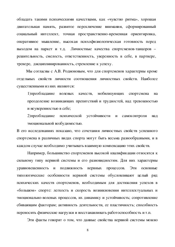особенностей танцоров и индивидуализации психологической подготовки еще не