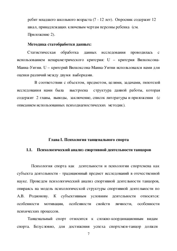 1.1. Психологический анализ спортивной деятельности танцоров………………7