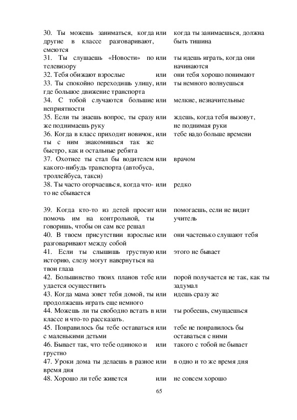 Children’s form of Manifest Anxiety Skale) предназначена для выявления