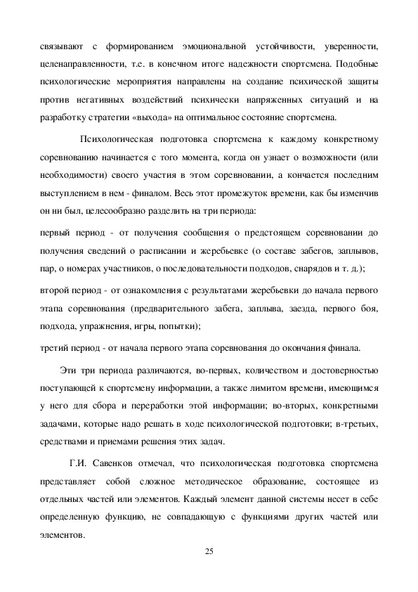 Г.И. Савенков отмечал, что психологическая подготовка спортсмена