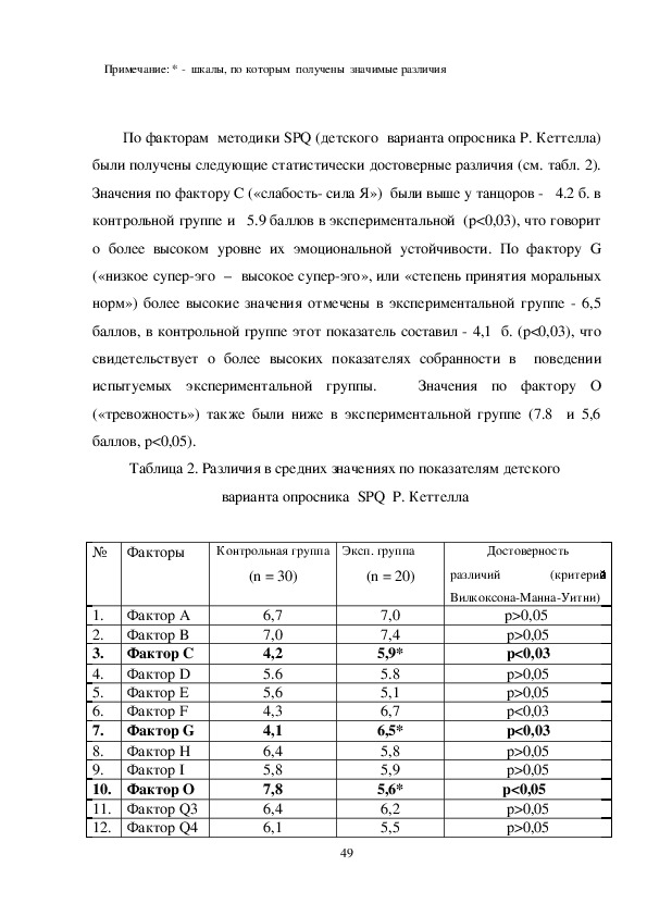 характеристиках детей занимающихся и не занимающихся танцевальными